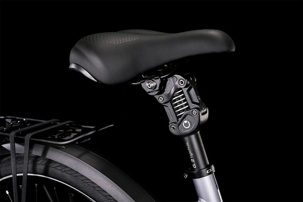 When it’s time to slow down the strong Shimano hydraulic disc brakes and grippy Schwalbe Marathon E-Plus tyres have got you covered. And the adjustable stem, RockShox Paragon Gold suspension fork and Byschulz suspension seatpost ensure you’ll be arriving at your destination in comfort. Parking is easy thanks to the included kickstand. An included light set ensures you can always see and be seen. And the mudguards and semi-integrated luggage carrier are the finishing touches.