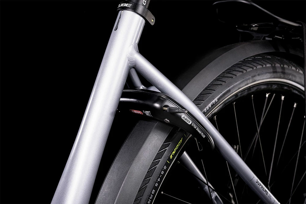 Simple, elegant, safe and practical: those are the qualities embodied by the new Supreme Hybrid’s frame. The PowerTube design incorporates the Bosch battery inside the frame for sleek looks and ease of use. The Easy Entry design does exactly what it says, making access simple for any rider. We fitted a tapered head tube because it’s strong, safe and improves steering accuracy for easy, intuitive handling. There’s a semi-integrated luggage carrier, and the frame is specifically designed for low-maintenance hub gears. But it’s not all about practicality – we also used our smooth-welding technique for an organic, elegant appearance that you’ll love.