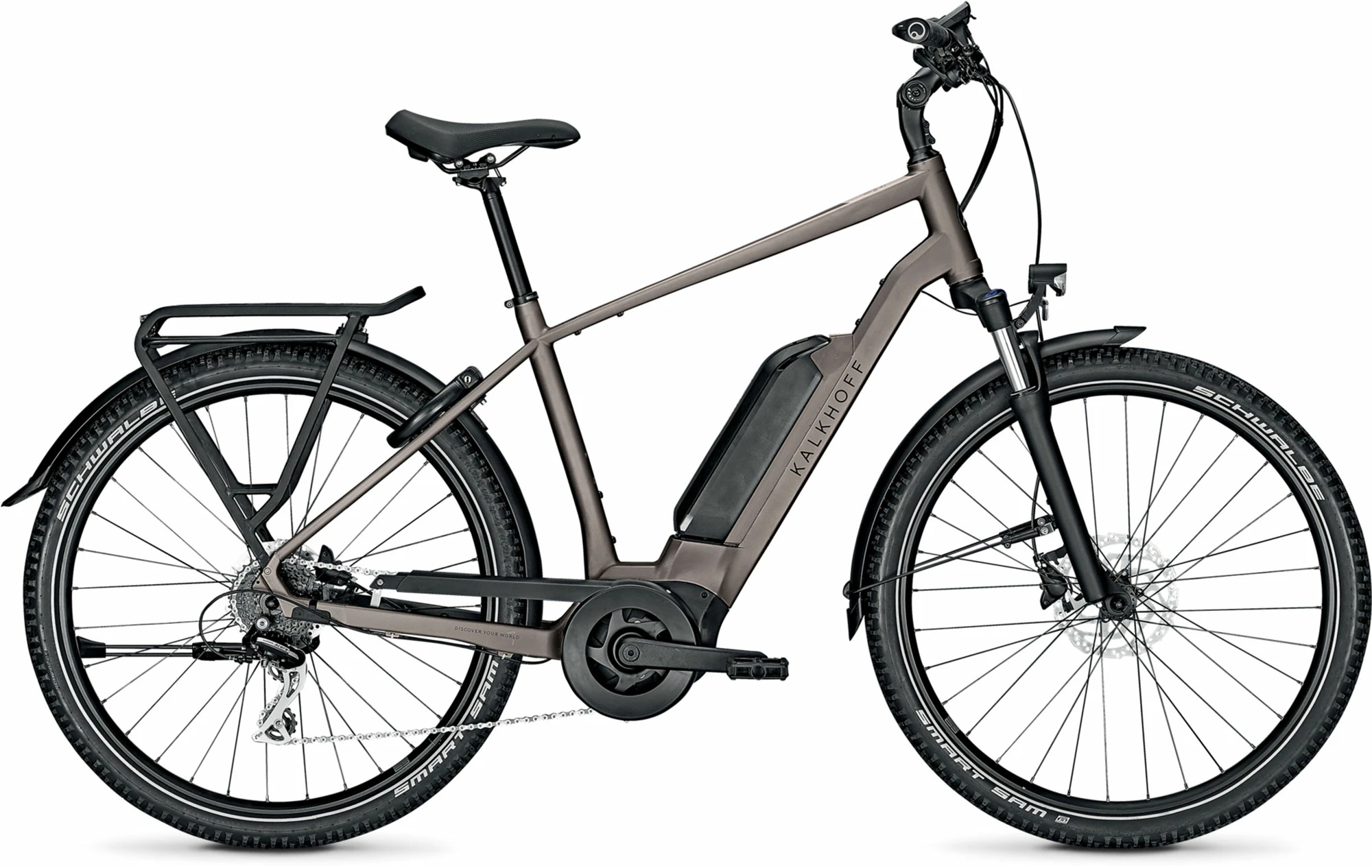 Your e-bike for discovering new worlds. Set off on new adventures and pursue your new goa Is – with the powerful Bosch Smart System, you climb even the steepest inclines effortlessly, while you keep track of how you’re doing on the lntuvia 100 display. The wide studded tyres will keep you hugging the road even on the trickiest gravel surfaces. And the comfortable shock-absorbing fork with extra travel will keep your ride smooth even when you’re going off-road. The Kalkhoff Entice 1.B Move is your ticket to the world of all-terrain e-bikes.