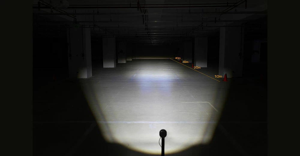 - Le rendement de 110 lux offre un faisceau large de 6 mètres et une vue de la distribution de la lumière à 60 mètres de distance